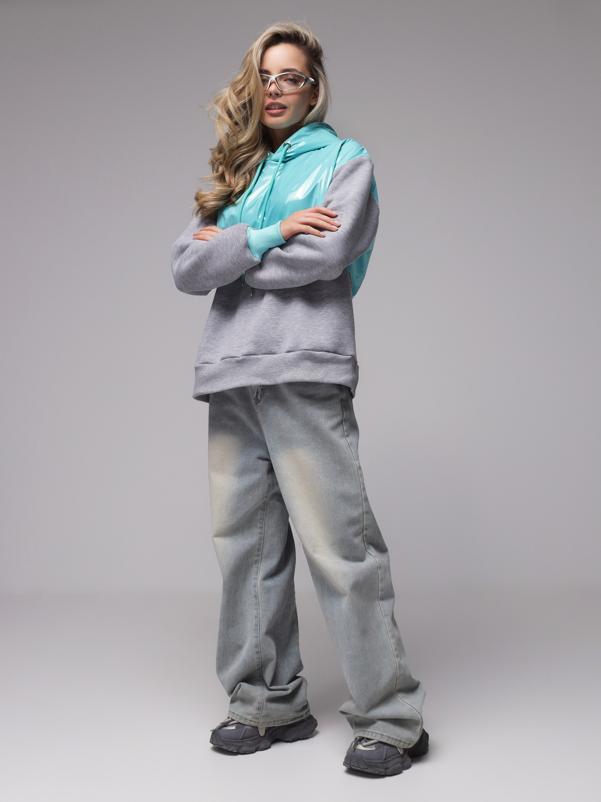 Размерная сетка по ГОСТ РФ, на съемке рост модели 170 см, параметры 85-63-86 см, размер худи на модели 46 (М).